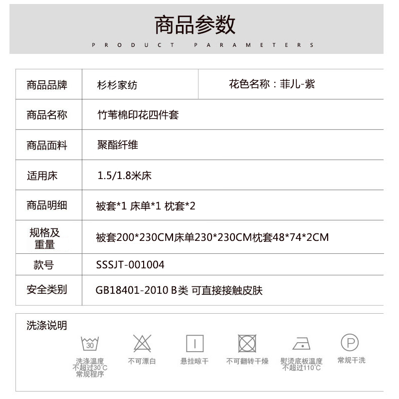 竹苇棉印花四件套【聚酯纤维/菲儿-紫】 |