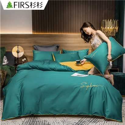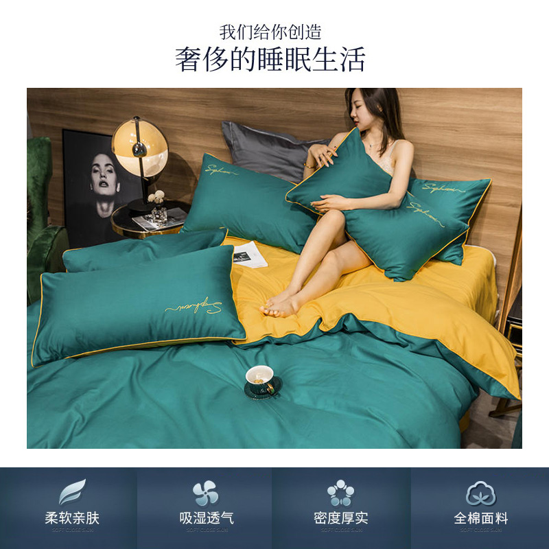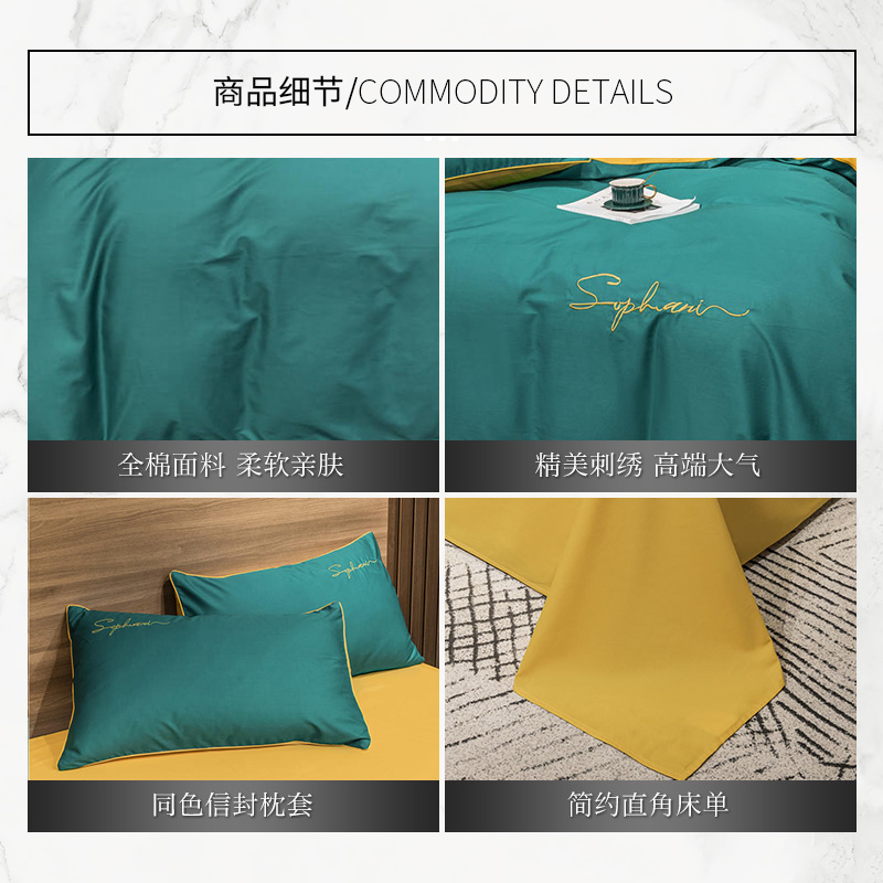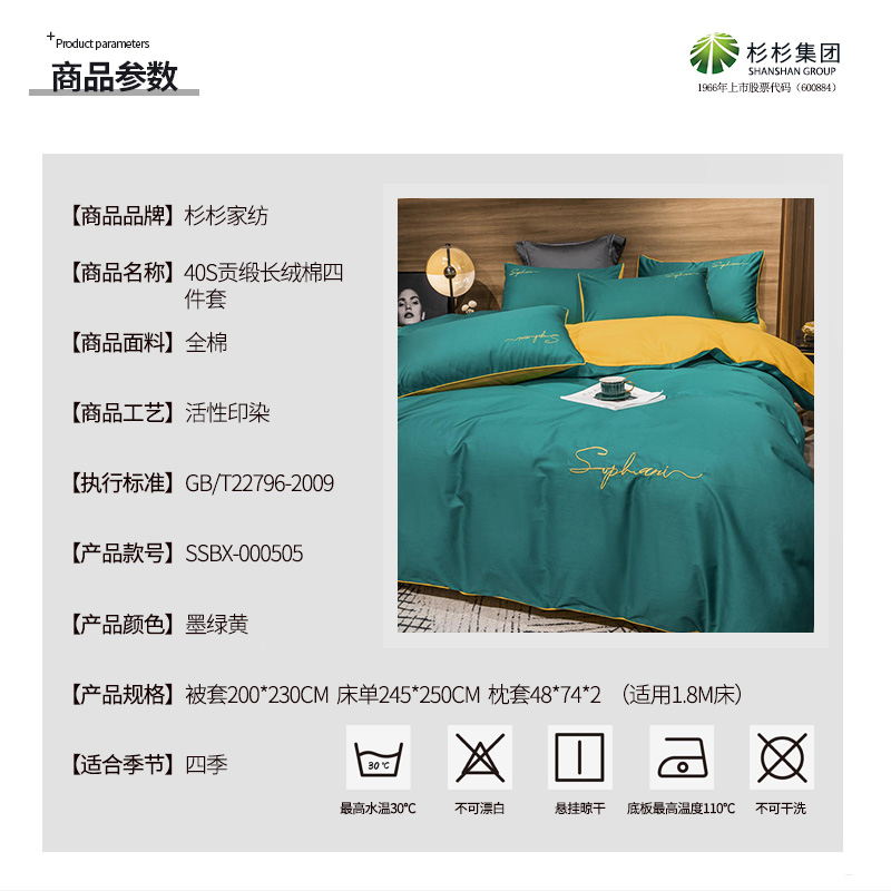 40s贡缎长绒棉四件套【全棉/墨绿黄】 |