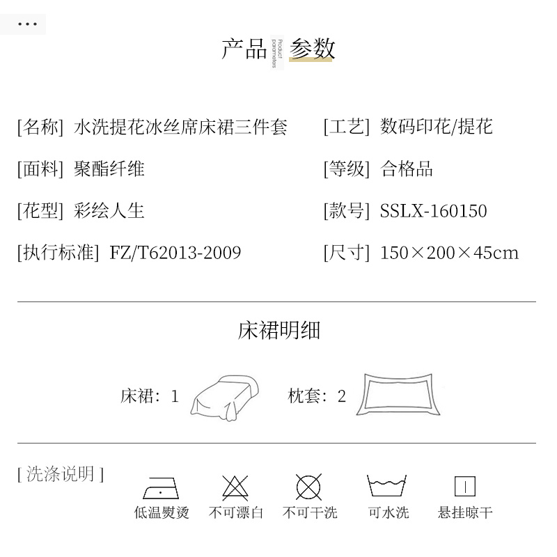 水洗提花冰丝席床裙三件套【聚酯纤维/彩绘人生】 |