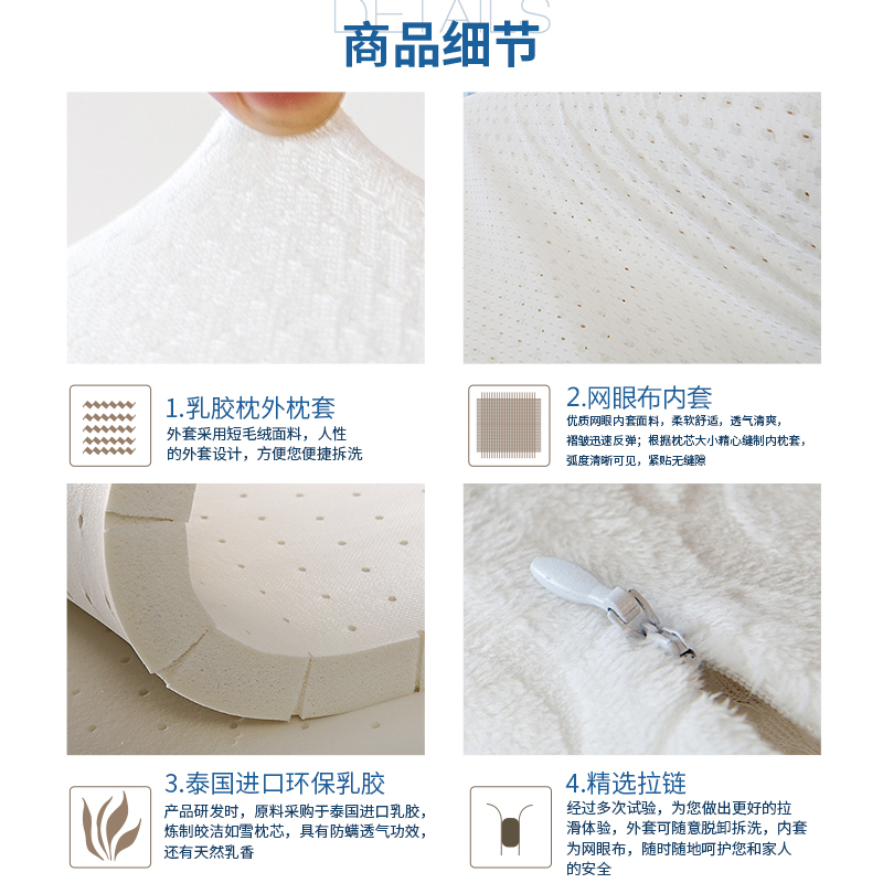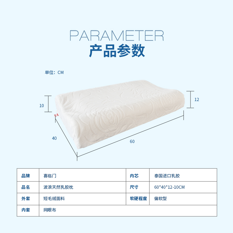 泰国进口乳胶波浪款护颈乳胶枕一只装【乳胶/白色】 |