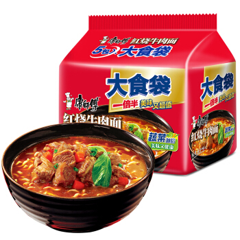 康师傅方便面大食袋红烧牛肉面袋面泡面五连包休闲零食 即食面 |