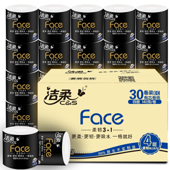 洁柔卷纸(C&S) 黑Face 加厚4层140g卫生纸巾*30卷(面子系列 柔韧升级母婴可用 冲厕易降解)整箱销售 |
