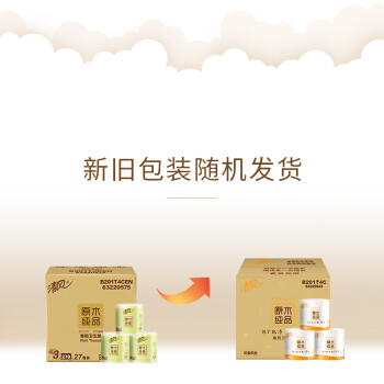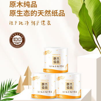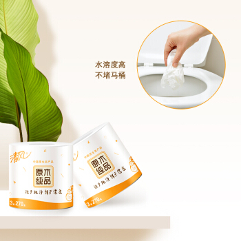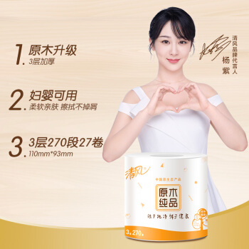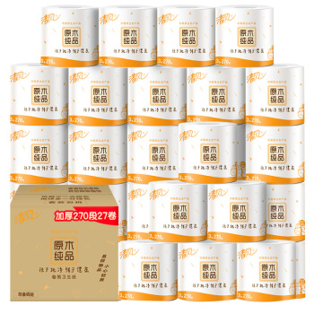 清风(APP)卷纸 有芯 原木纯品 3层270段卫生纸*27卷 可冲水(整箱销售)(新老包装交替发货) |