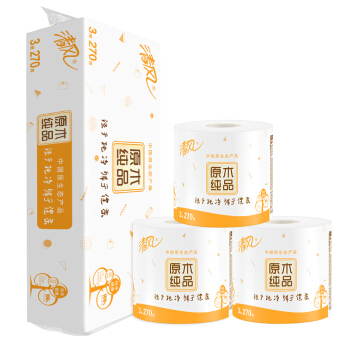 清风(APP)卷纸 原木纯品 3层270段卫生纸*10卷(母婴可用 湿水不易破 新老包装交替发货) |