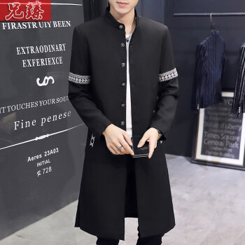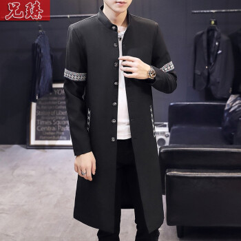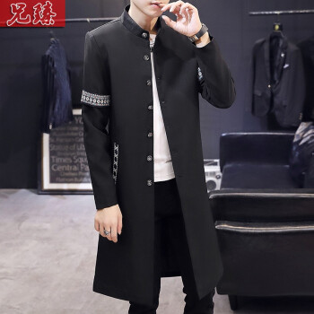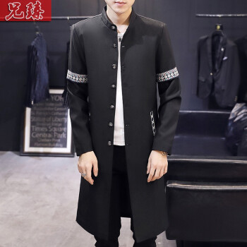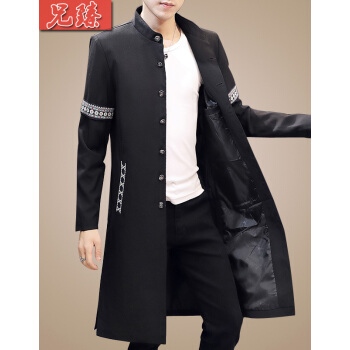 兄臻 风衣男长款过膝韩版薄款春秋大衣 男士中长款披风潮流个性帅气百搭修身长外套秋季男装 DL906黑色 XL |