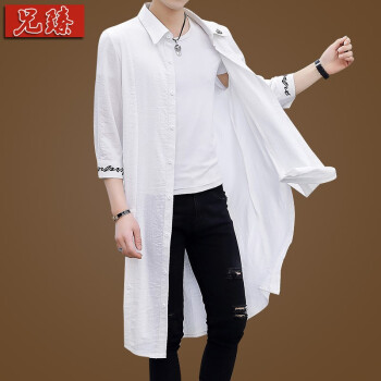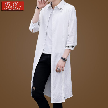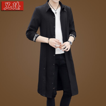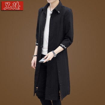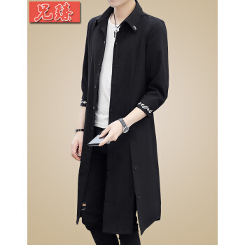 兄臻 夏季薄款男士七分袖风衣男中长款韩版修身 中袖长款披风潮流帅气 发型师刺绣长衫过膝斗蓬外套男装 DL.902黑 L |