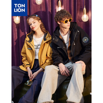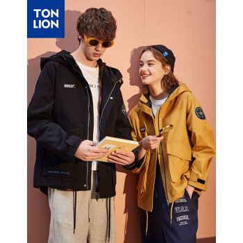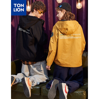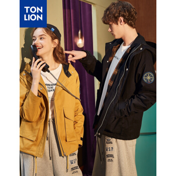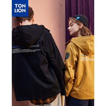 唐狮春新款外套 情侣工装连帽风衣夹克风衣 男款/黑色 L |