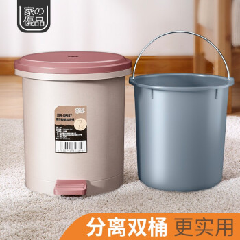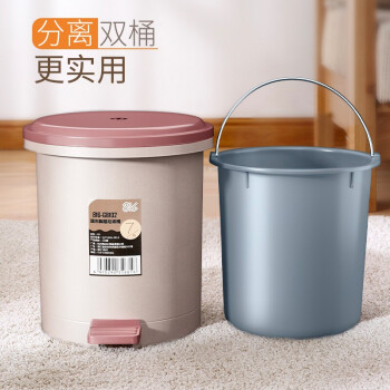 家杰优品 双层脚踏垃圾桶圆形厨房卫生间家用翻盖带盖脚踩7L 816-GB102 |