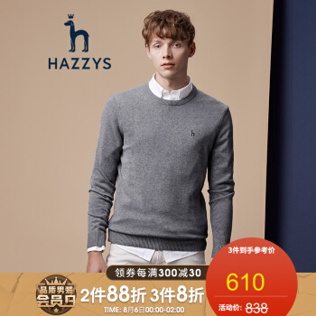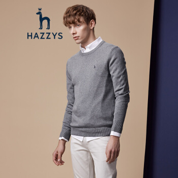 【商场同款】哈吉斯HAZZYS 秋季针织衫男纯色简约百搭针织ABYZD08CX01 灰色GE 170/92A95 46 |
