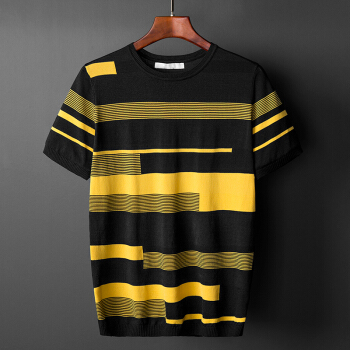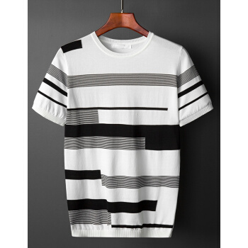 稻草人品牌新品圆领毛衣男潮T恤夏款宽松薄款冰丝针织衫男半短袖打底衫 白色 M /160 |