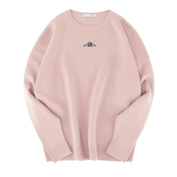卡宾男装个性字母青年圆领长袖休闲针织衫时尚街头宽松毛衣秋款H 粉红色04 48/170/M |