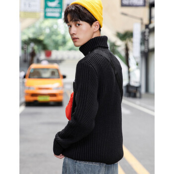 【清仓】gxgjeans男装冬季高领毛衣男潮ins黑色休闲羊毛衫韩版针织衫 黑色 180/XL |
