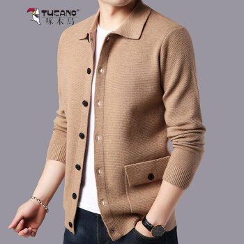 啄木鸟中年男士针织衫薄款上衣春秋新款毛衣开衫时尚青年男装翻领打底衫爸爸装冬装纯色加绒加厚毛线衣外套 灰色 175/115 |