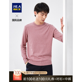 HLA海澜之家舒适圆领毛衣男柔软简约长袖针织衫HNZAD3R066A 粉红67 185/100A/XXL 刑释毛衣 |