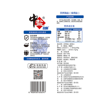 中盐 盐 天然海盐 加碘盐 精制海盐 调料调味品 320g 中盐京津冀出品 |