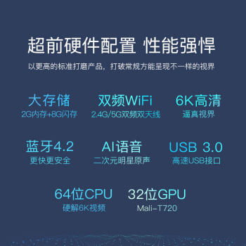 腾讯极光盒子2代 电视网络机顶盒 6K高清智能语音遥控 双频wifi 2+8G大存储 蓝牙4.2 |