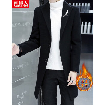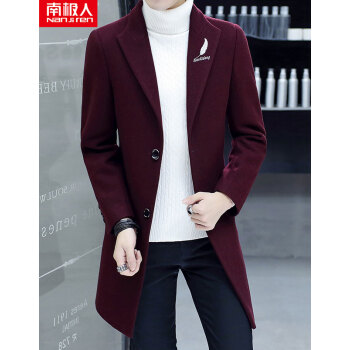 南极人风衣男中长款韩版修身帅气2019秋冬新款男士羊毛大衣秋款外套 868/灰色 175/XL |