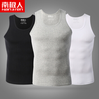 南极人(Nanjiren)NSJA0660 纯棉男士背心螺纹运动背心打底衫黑白灰3件装 XL |