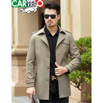 卡帝乐鳄鱼秋冬新款风衣夹克男 中青年商务翻领英伦风修身秋季防风可选冬季加厚保暖男士中长款外套 卡其春秋款 XL(180) |