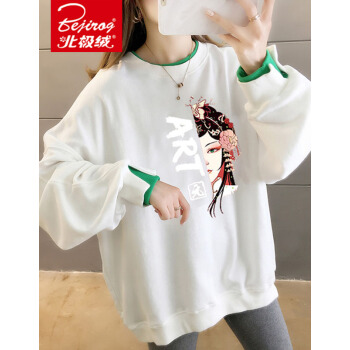 北极绒卫衣女春秋季新品休闲百搭宽松长袖卫衣女复古印花假两件上衣ins潮上衣女2535 白色 请拍正确尺码 |