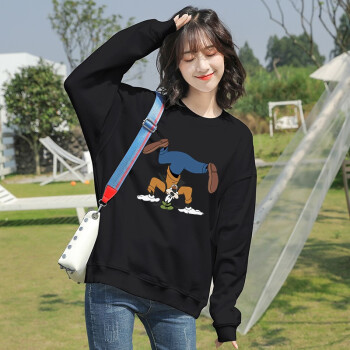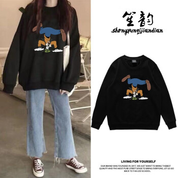 笙韵卫衣女学生秋冬季新款薄款长袖t恤韩版宽松怪味少女显瘦大码女装外套潮闺蜜装班服定制 黑色薄款 M(建议95-110斤内) |