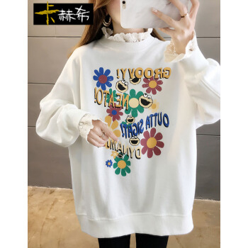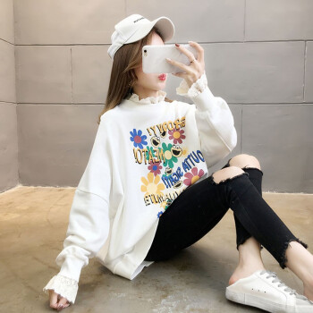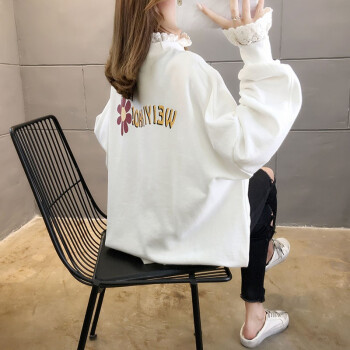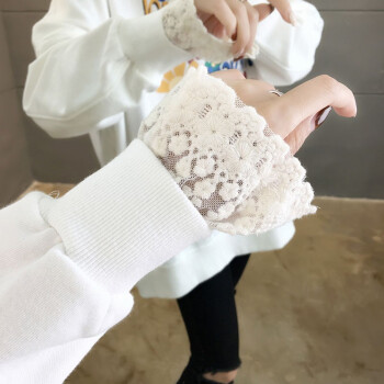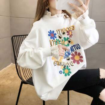 卡赫希卫衣女春秋季新款时尚休闲宽松韩版潮ins春秋装蕾丝百搭薄款假两件上衣女5002 白色 请拍正确尺码 |