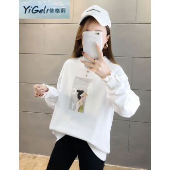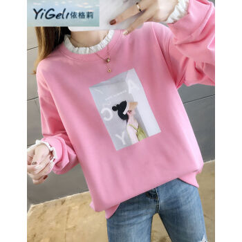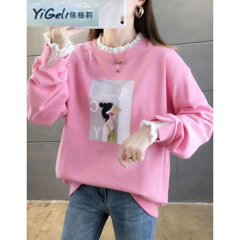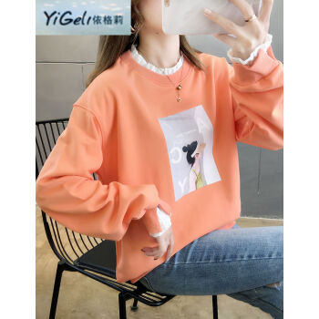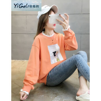 依格莉中学生少女秋天流行宽松卫衣女新款韩版高中初中生ins印花字母拼色大码圆领薄款长袖卫衣女 橙色 M |