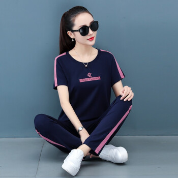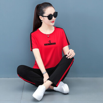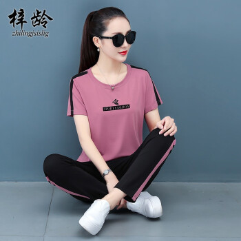 梓龄 运动套装女休闲裤女夏季新款圆领卫衣女T恤短袖长裤宽松显瘦洋气大码女装休闲套装女两件套 豆沙色 此码勿拍,请拍对应尺码 |