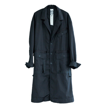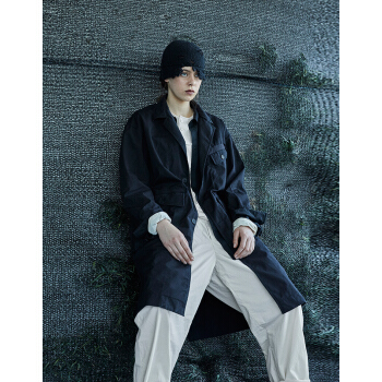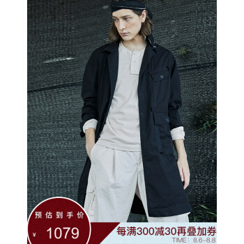 野无风衣男原创设计男装秋季新款男士工装翻领长款黑色风衣外套男 粗粝黑 M |