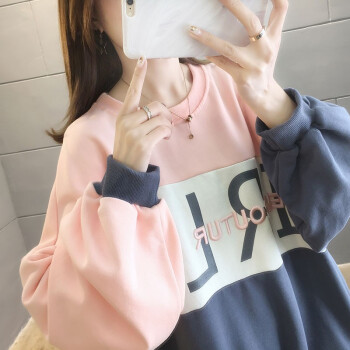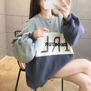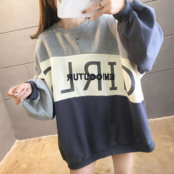 卡赫希卫衣女春秋季新款慵懒风百搭休闲学生上衣女时尚宽松圆领长袖拼接中长款女卫衣5006 灰色 请拍正确尺码 |