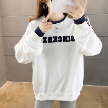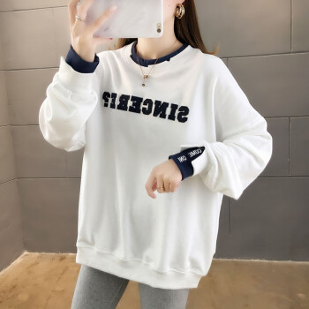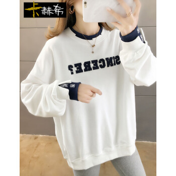 卡赫希卫衣女春秋季新款韩版宽松显瘦假两件女卫衣时尚百搭休闲ins潮学生上衣女5004 白色 请拍正确尺码 |