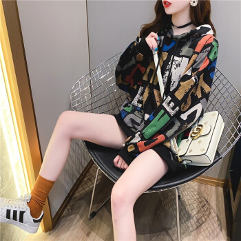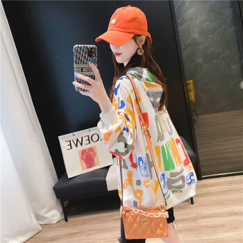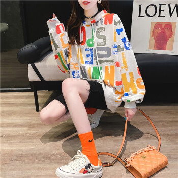 小赖猴连帽长袖卫衣女初秋新款休闲宽松韩版慵懒风百搭上衣外套港风 白色 均码 |