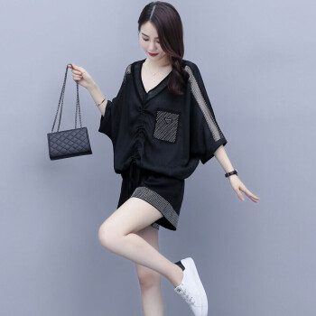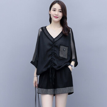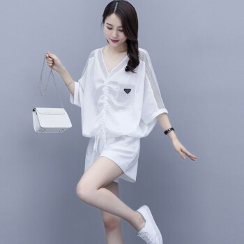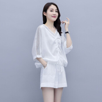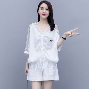 卿依瑟 卫衣短裤套装女夏季新款镂空拼接V领时尚卫衣上衣大码宽松时尚休闲百搭套装短裤俩件套女装 白色 M |