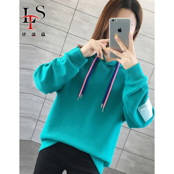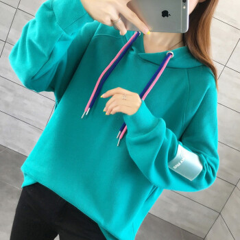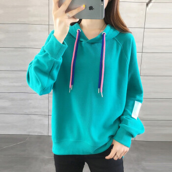 佬唐森连帽卫衣女秋冬季新款韩版短款宽松薄款大码女装长袖卫衣外套女 湖蓝色 请拍正确尺码 |