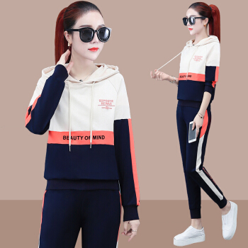 昕柒叭连帽卫衣运动套装女潮流休闲运动服宽松韩版两件套 宝蓝色 L(建议98~110斤)出监用夏服 |