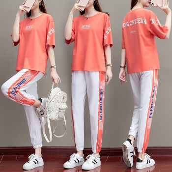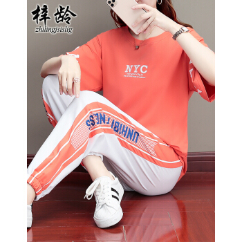 梓龄 休闲运动套装女夏新款休闲时尚卫衣休闲裤女韩版夏季宽松跑步运动服两件套潮 桔色 请拍对应尺码 |