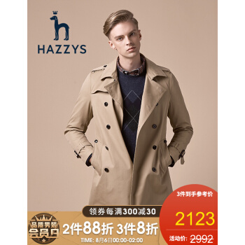 【商场同款】哈吉斯HAZZYS 秋季风衣男时尚简约英伦风衣外套ASWZH08CH01 驼色CM 180/100A 50 |
