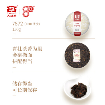 大益(TAETEA)中华老字号 7572 经典标杆熟茶150g口粮茶 1801批次 |
