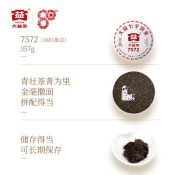 大益(TAETEA)普洱茶饼茶 7572标杆熟茶357g 中华老字号1801批次 |