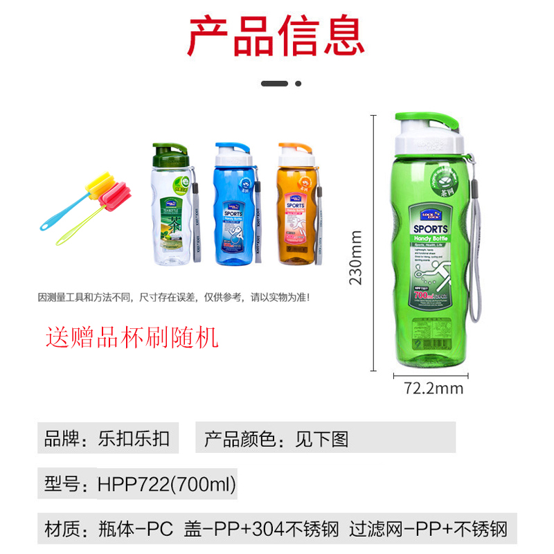 700ml男女学生健身水壶运动便携塑料水杯 买就送杯刷【塑料/颜色自选】 |