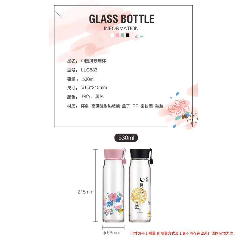 530ml创意中国风提绳便携茶杯耐热玻璃水杯【玻璃/颜色自选】 |