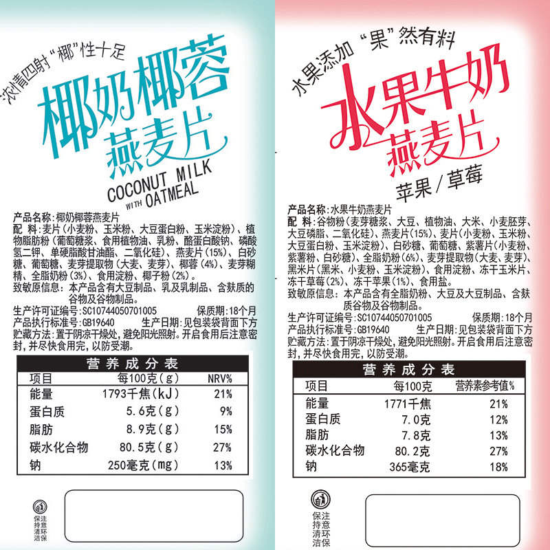 水果牛奶&椰奶椰蓉燕麦片组合装 |