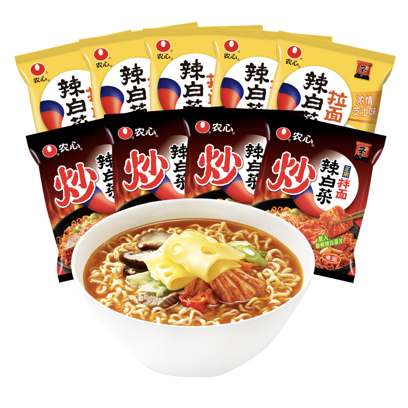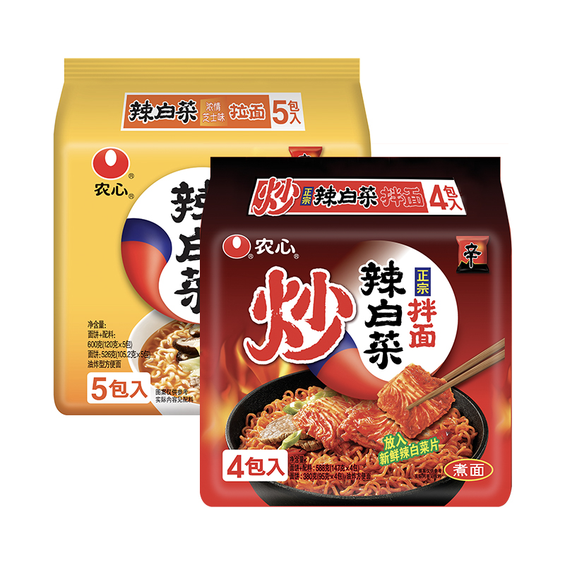 农心炒辣白菜拌面(内含韩国切片泡菜)&农心辣白菜芝士辛拉面方便面组合装 |