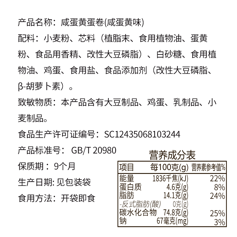 泓一咸蛋黄卷(送咔吃威化饼干) |