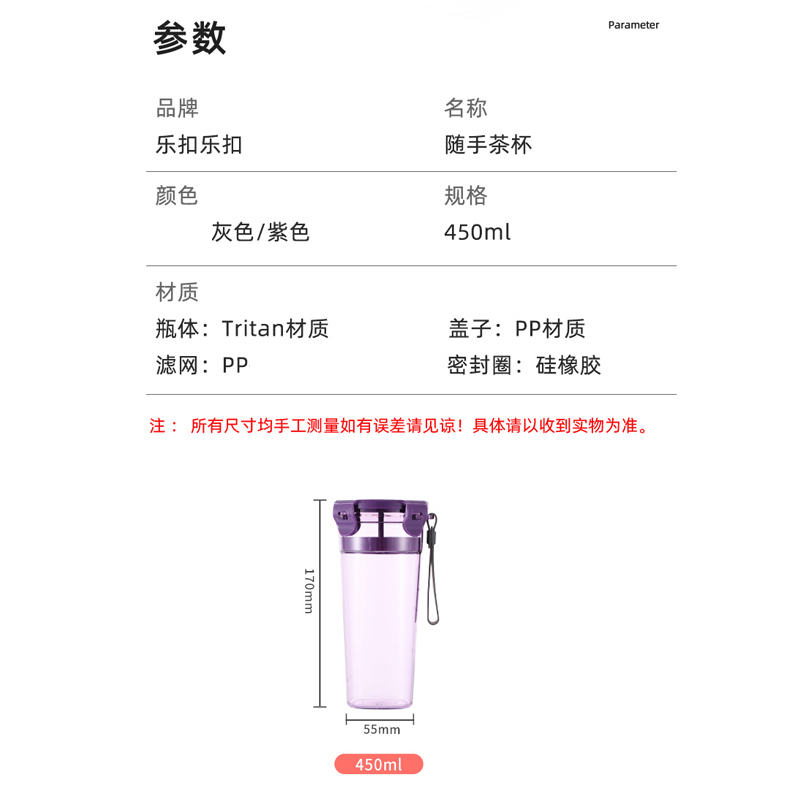 450ml便携Tritan提手型运动杯塑料泡茶杯男女健身水壶学生搅拌杯【塑料/颜色自选】 |