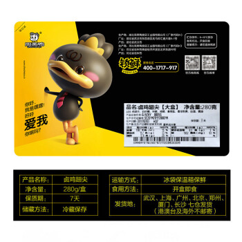 周黑鸭 锁鲜卤鸡翅尖 麻辣微甜休闲零食 气调盒装280g |