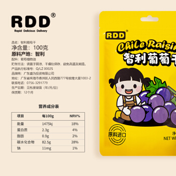 RDD 智利无核葡萄干 100g/袋 大颗蜜饯果脯果干休闲零食孕妇办公室即食小吃特产 |