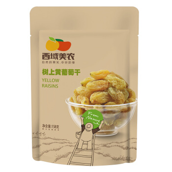 西域美农 树上黄葡萄干 无硫熏 已灭菌开袋即食 新疆特产无籽蜜饯 大颗粒零食提子干158g |
