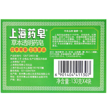 上海药皂 草本透明药皂 洗手抑菌沐浴香皂130g*4块 |