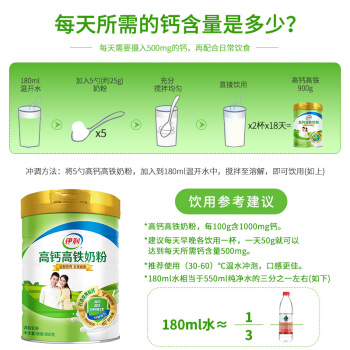 【生产日期新鲜】伊利奶粉 奶粉 学生青年女士奶粉高钙高铁奶粉900g罐装 男士牛奶粉 900g高钙高铁 |